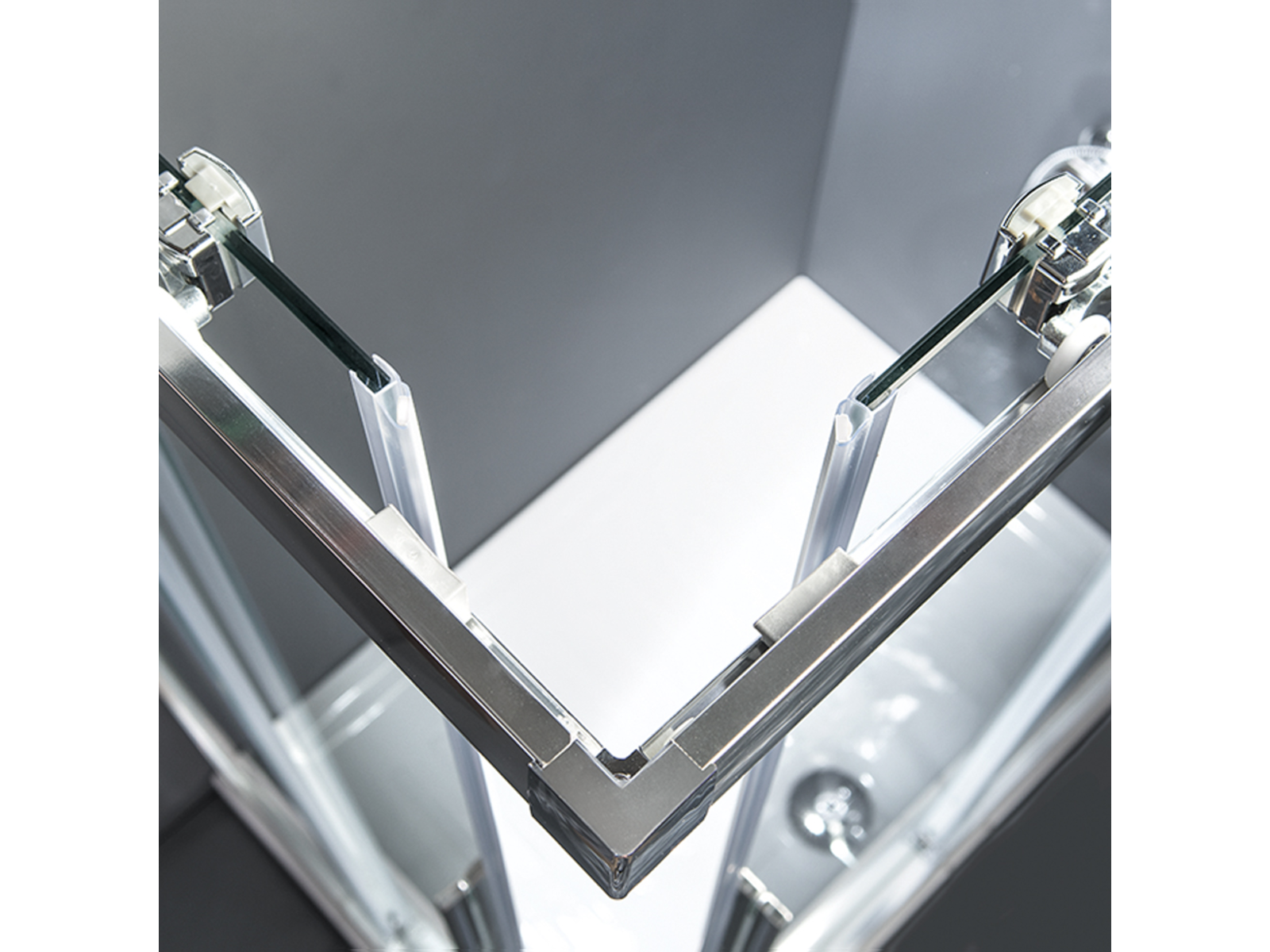 - Corner entrance cabin with 2 fixed & 2 sliding sheets 6mm thickness (inverted) with magnetic closure