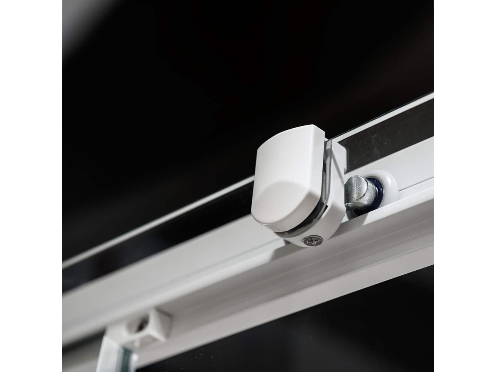 - Shower door with 1 fixed and 1 sliding sheet (inverted). It can be installed either alone or with a side panel of 70, 80 or 90 cm.